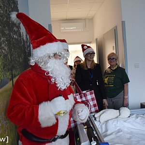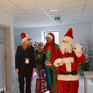 Mikołajowi towarzyszyła ordynator Aleksandra Glińska oraz wolontariusze Fundacji Hospicjum Głogowskie i personel. Ta placówka działa już prawie dwa lata, Święty Mikołaj odwiedza ją więc po raz drugi.