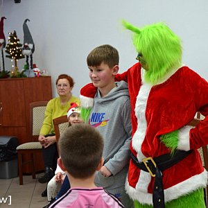 Pracownicy Gminnego Centrum Kultury w Jerzmanowej przygotowali dla dzieci dużo świątecznych atrakcji, jak warsztaty dekorowania pierniczków i bombek, słodki poczęstunek i niespodzianka - szukanie Zielonego Psotnika, a później wielka zabawa. W Jaczowie na zewnątrz, przy domu kultury. Emocje sięgnęły zenitu, gdy zajechał saniami święty Mikołaj ze Śnieżynką i prezentami. W Jaczowie czekało na niego blisko 190 dzieci. W całej gminie Mikołaj wręczy paczki ponad 600 dzieciom w wieku od roku do 12 lat.