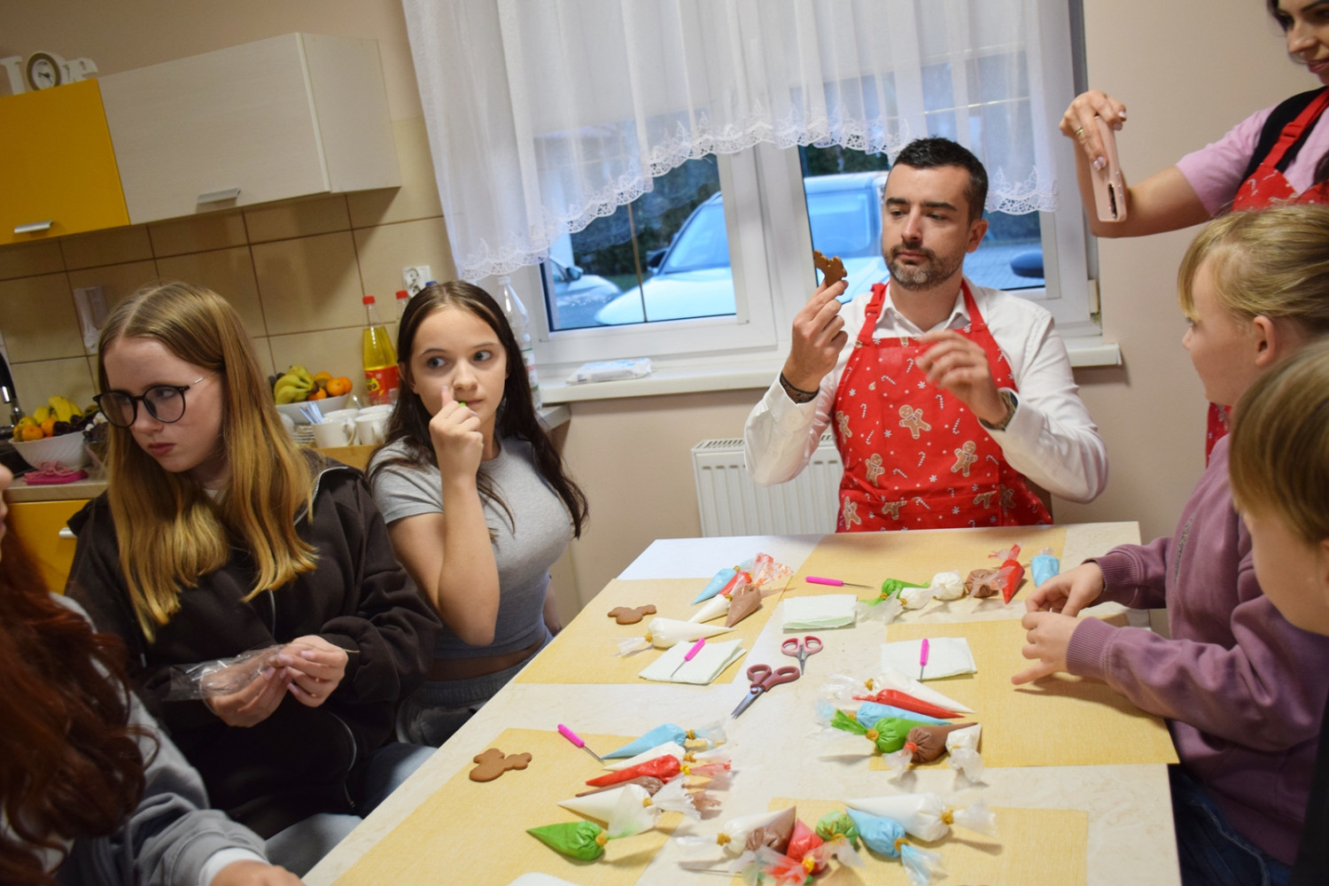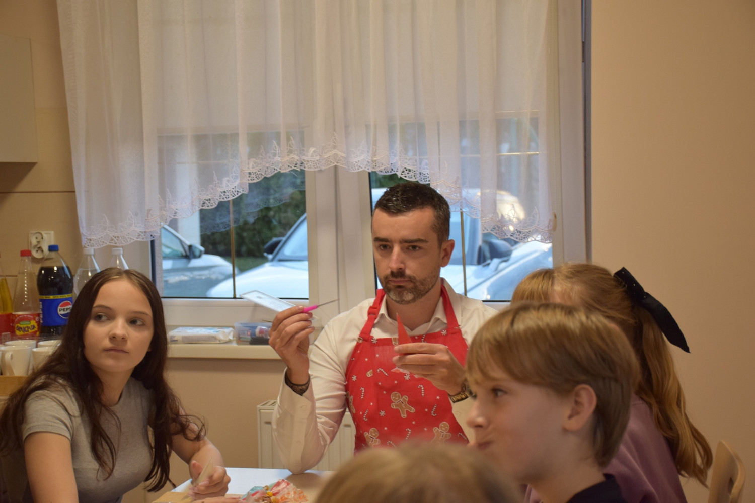 Uczyła krok po kroku jak dekorować pierniki. Atmosfera była swobodna, twórcza. Starosta się przygotował, nałożył specjalny fartuszek. Razem z dziećmi odkrywał, że lukrowanie może być nie tylko formą artystycznego wyrażenia, ale też świetnym sposobem na wspólne spędzanie czasu.