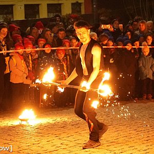 W sercu miasta zgromadzili się zuchy i harcerze, ale także liczni przechodnie, którzy z zainteresowaniem obserwowali to, co działo się na rynku. Najpierw publiczność mogła podziwiać pokazy z wykorzystaniem ognia – dynamiczne i pełne energii, rozświetlające zimowy wieczór ciepłym blaskiem. Chwilę później przestrzeń rynku wypełnił spektakularny pokaz laserowy, który na tle kamienic tworzył niezwykłe, kolorowe obrazy.