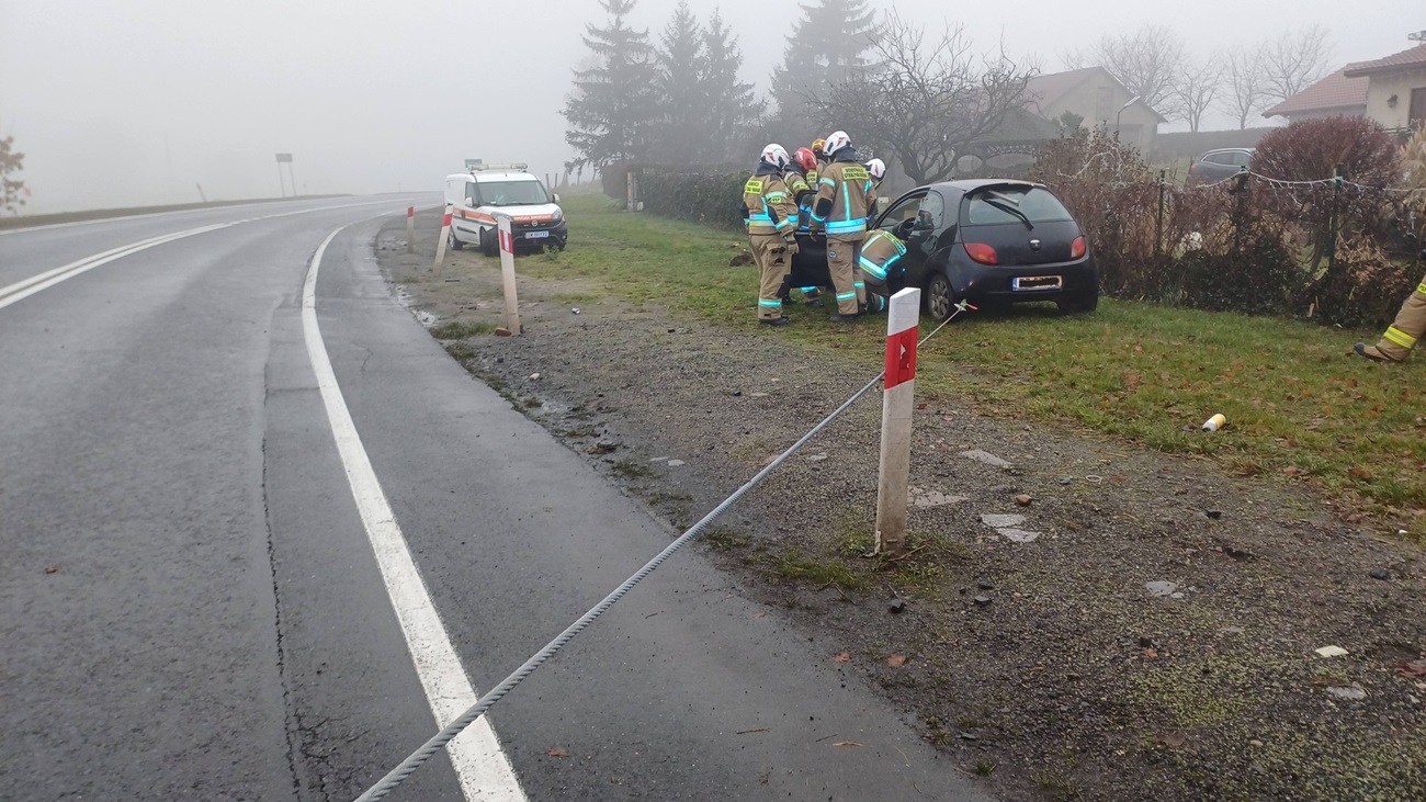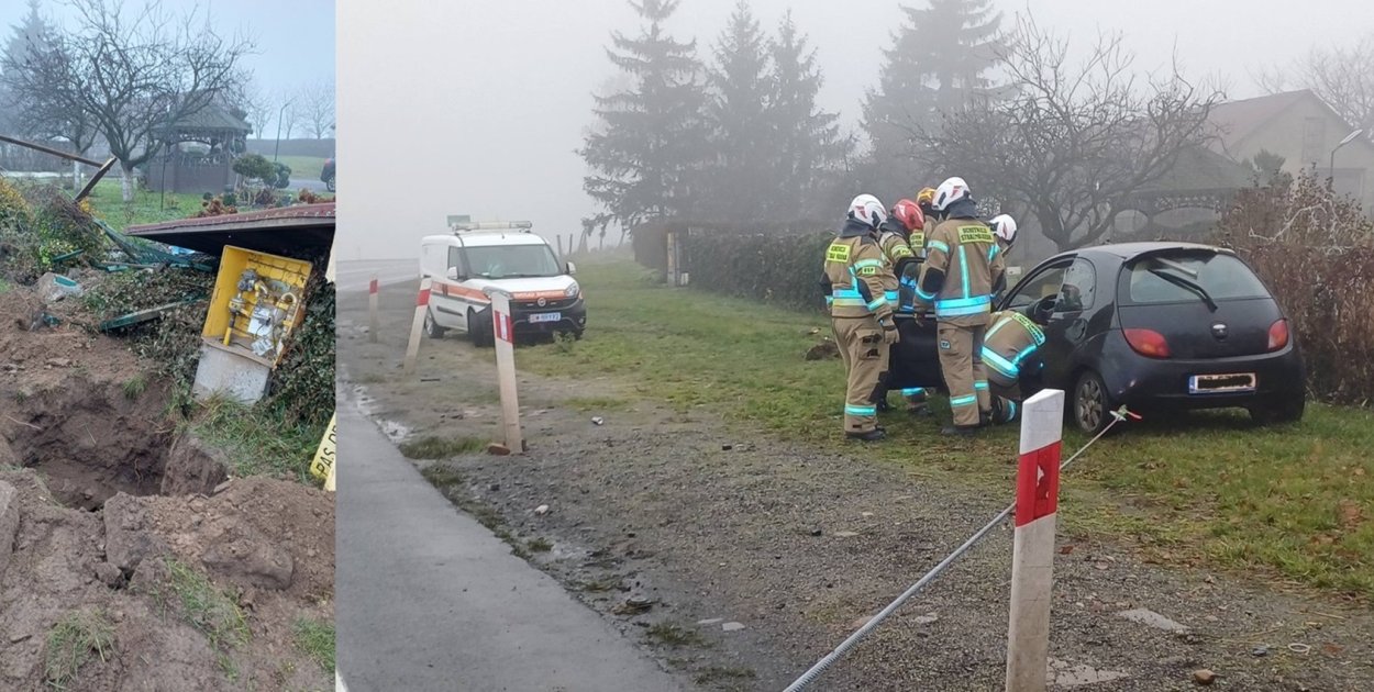 Kierowca samochodu marki Ford Ka około godz. 9.40 zjechał z trasy i uderzył w skrzynkę z gazem ziemnym.