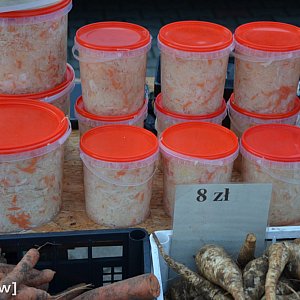 Tutaj nawet łowcy marketowych promocji i okazji przychodzą po świeże naturalne produkty od lokalnych producentów - wszystko co potrzebne na święta. A produkty na tradycyjną wigilię akurat nie są drogie. Można wybierać i gotować. Bożena Kozłowska ma na stoisku nie tylko świeże owoce. Sama suszy jabłka i gruszki ze swojego sadu. Suszone jabłka po 30 zł, a gruszki po 35 zł za kilogram. Ludzie kupują nie tylko na kompot wigilijny, ale też dla dzieci, na zdrowe przekąski zamiast słodyczy. Przez cały rok.