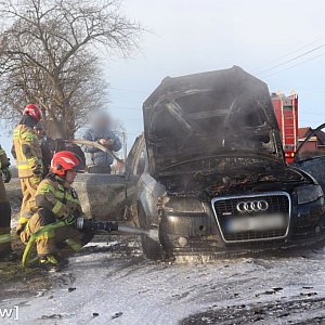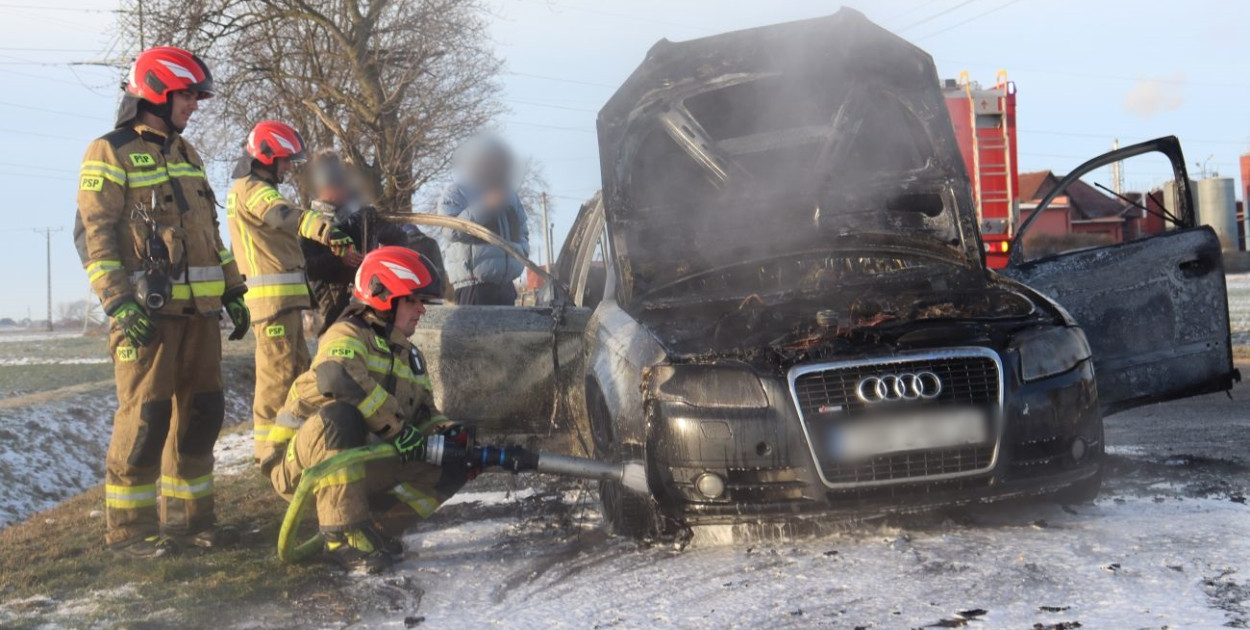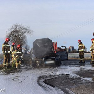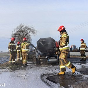 Informacja o palącym się samochodzie dotarła na numer alarmowy około godziny 9.00. Sytuacja była bardzo niebezpieczna - auto zapaliło się na trasie Słone - Głogów, tuż przed wjazdem na drogę DW 292.
