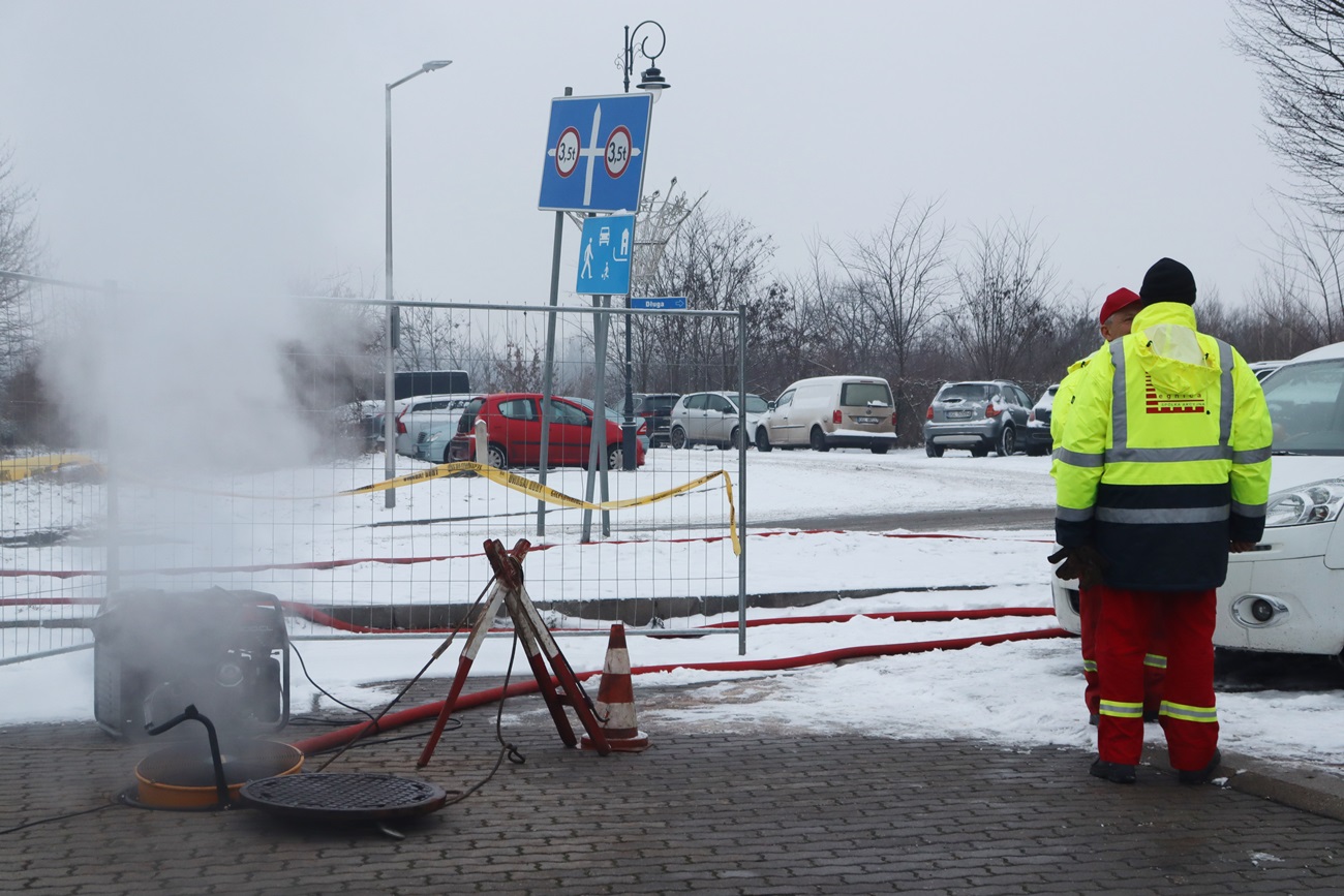 Warto dodać, że na parkingu przed Lidlem unoszą się kłęby pary, ale to nie jest główne miejsce awarii. Usterka usuwana jest w rejonie ulicy Słodowej, a przywrócenie ciepła może potrwać do godzin południowych.