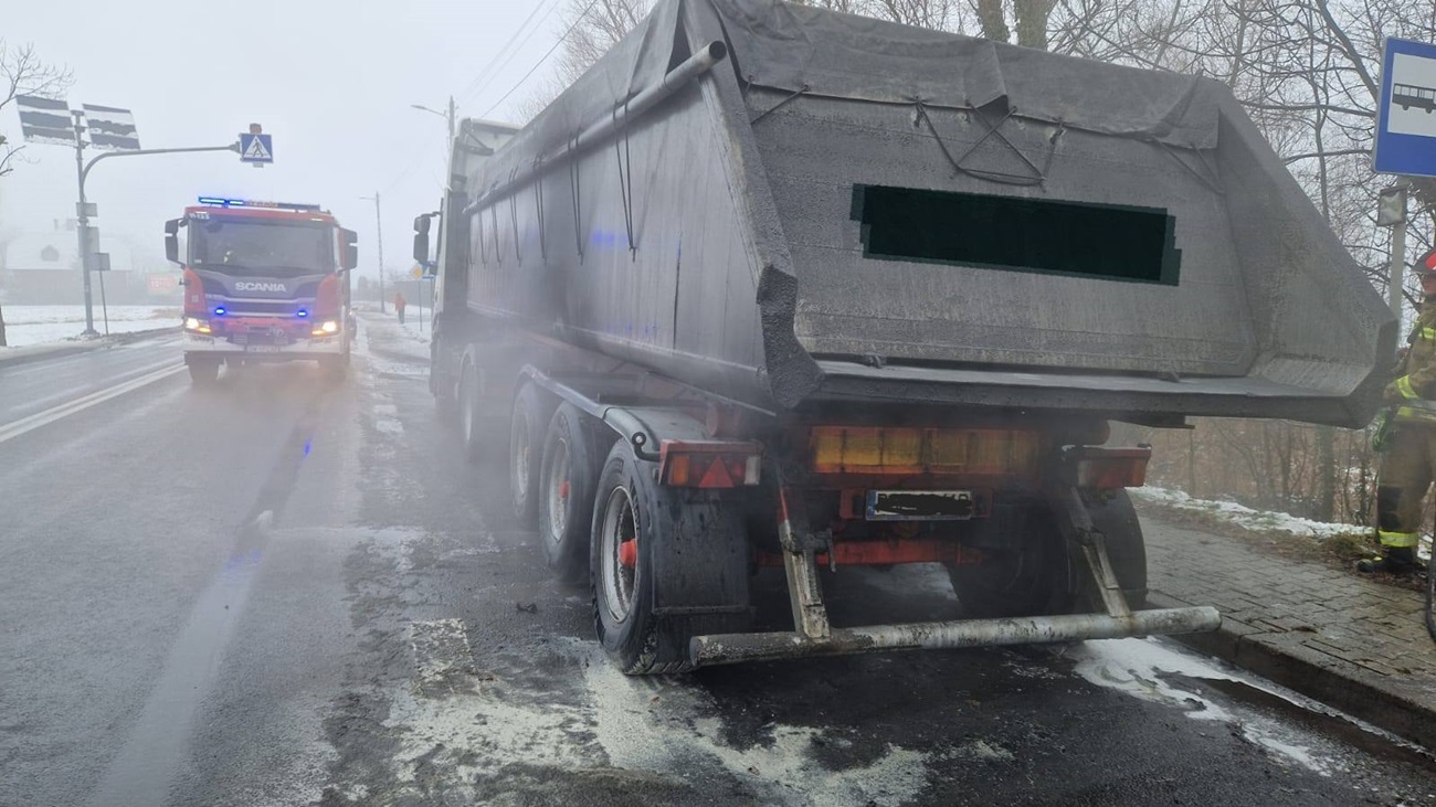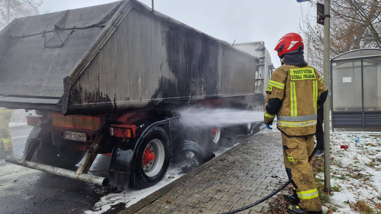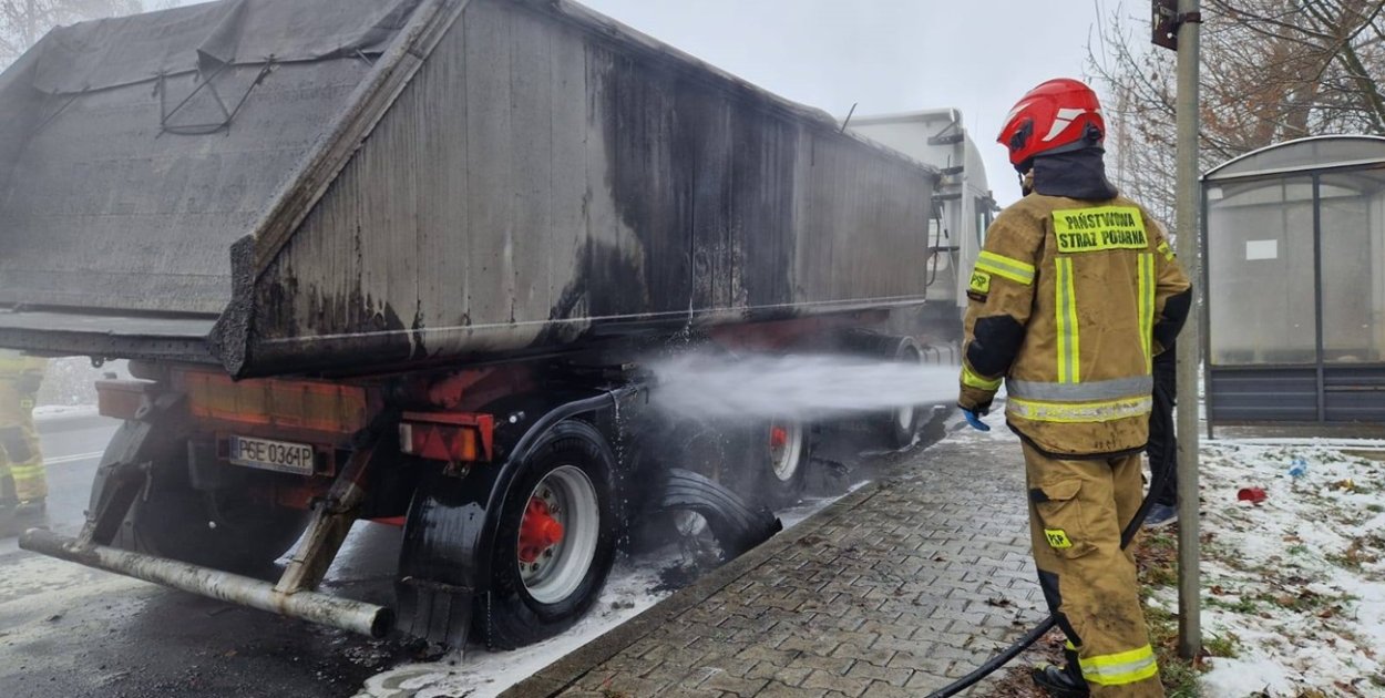 Przed południem strażacy zostali zadysponowani do zdarzenia na drodze krajowej DK12, na wysokości Dankowic. Po przyjeździe na miejsce okazało się, że pożar dotyczył jednej z opon.