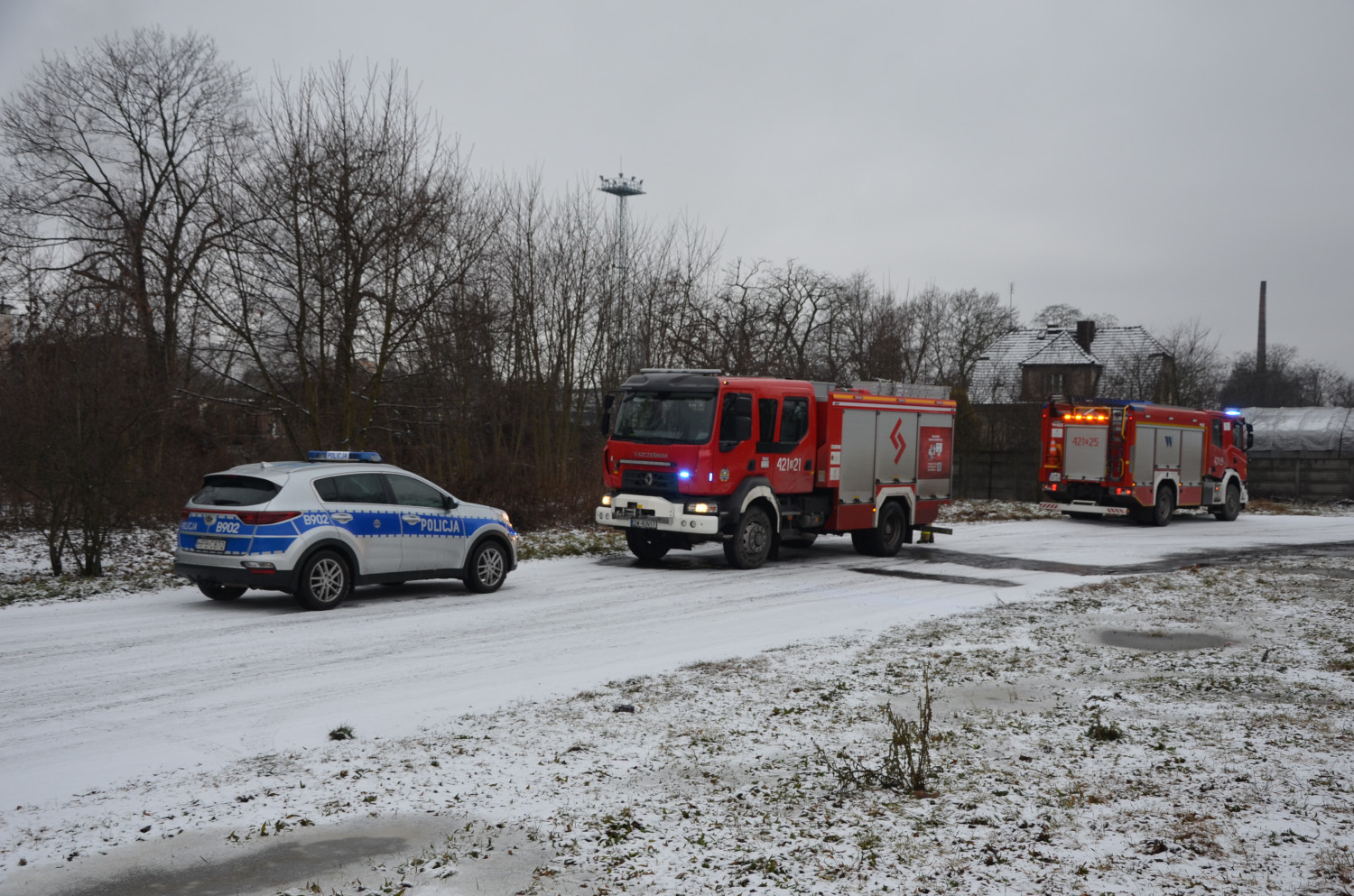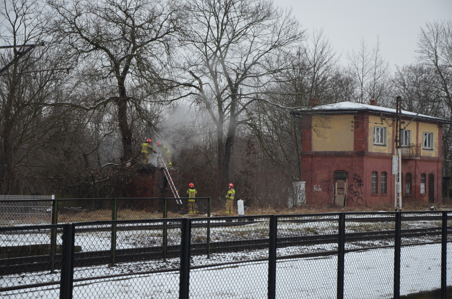 Zgłoszenie o pożarze w pustostanie wpłynęło ok. godz. 15. (27.01.). Strażacy mieli utrudniony dostęp - to budynek przy torach ostatniego peronu, a od strony placu festynowego i ul. Topolowej - odgrodzony chaszczami i płotem.