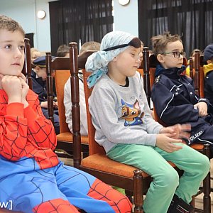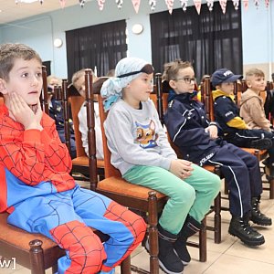 Kolorowo było nie tylko na scenie. W ostatnim dniu przed feriami uczniowie przyszli do szkoły w przebraniach. Na widowni można było spotkać policjantów, diabła, księżniczki, a nawet Spidermana, co dodatkowo podkreśliło wyjątkową atmosferę wydarzenia.