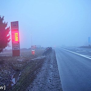 Na miejscu w godzinach porannych nie było już służb, a tył Suzuki częściowo wystaje na pobocze. Jadąc od strony Głogowa do Jerzmanowej należy uważać zarówno na porzucony samochód, jak i na gęstą mgłę oraz śliską nawierzchnię.
