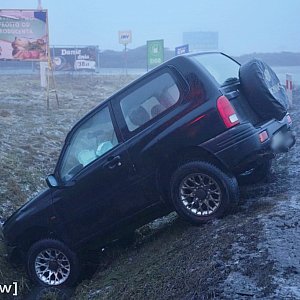 Suzuki dosłownie wisi na skarpie przy popularnej Jerzmanówce.
