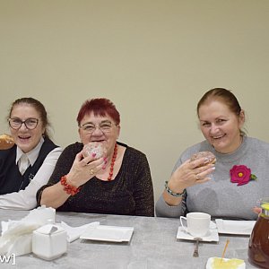 Tym razem była dyskoteka. Najpierw pączek, a potem tańce, żeby zbić kalorie. Jak widać na zdjęciach, zarówno energia, jak i humory dopisywały. Pań było więcej, a panowie byli wręcz rozrywani. Jedno jest pewne: zabawa była świetna.
