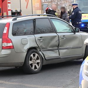 W wyniku zderzenia uszkodzony został bok Volvo oraz przód BMW.