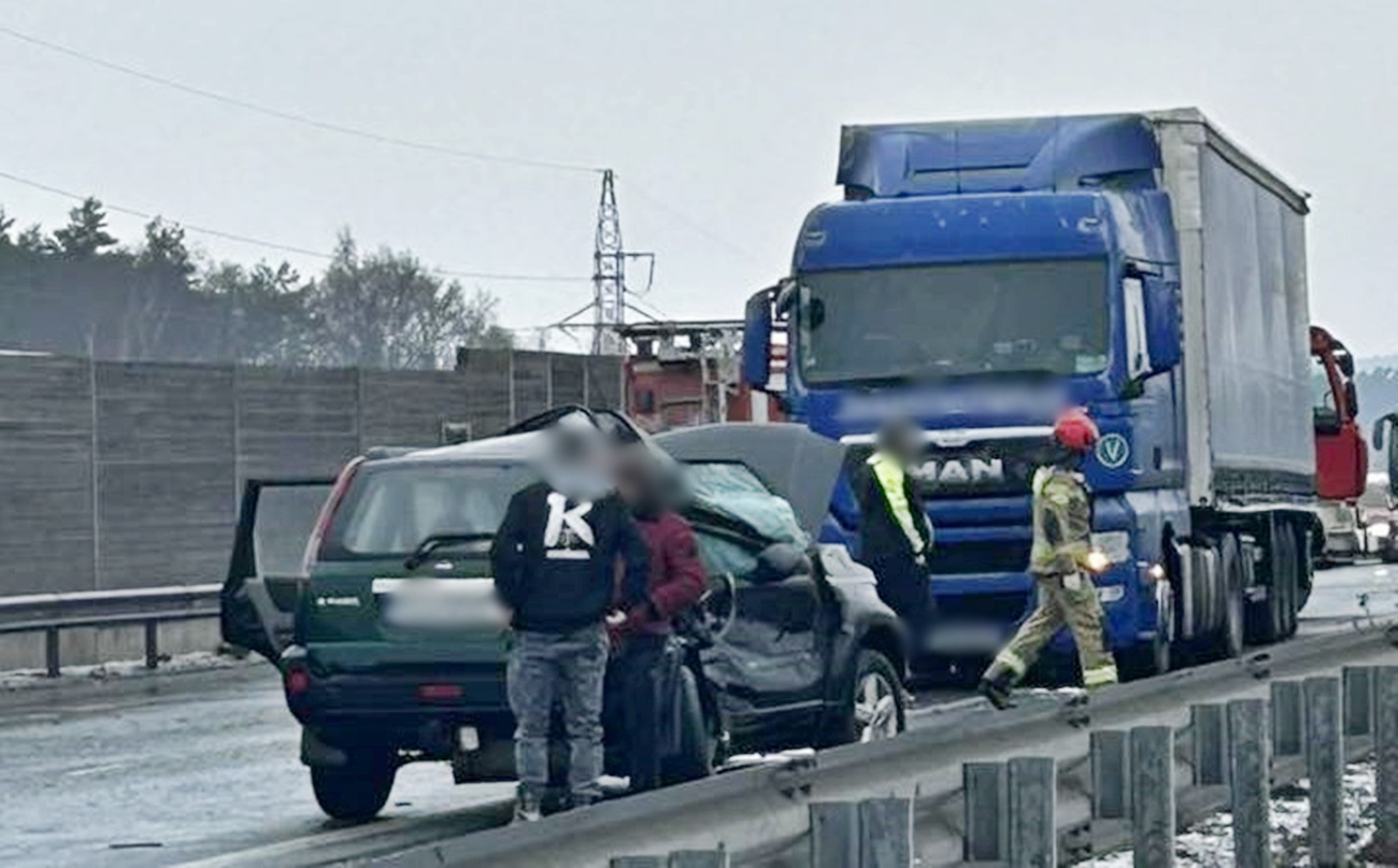 Do zdarzenia doszło w godzinach rannych na śliskiej nawierzchni drogi S3. Na środku jezdni znajduje się przewrócona ciężarówka. W sumie doszło do dwóch kolizji na obu nitkach drogi ekspresowej.