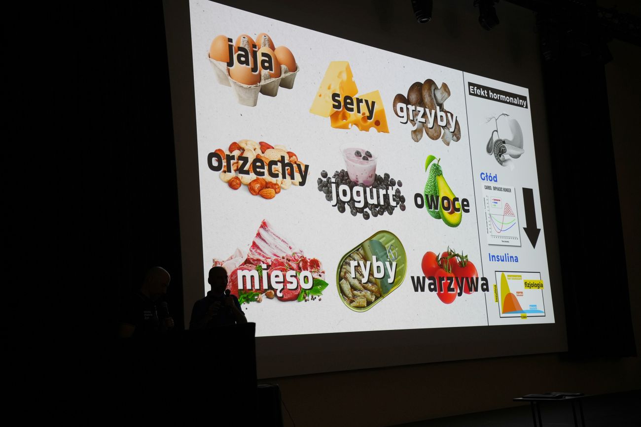 Centralnym punktem wykładu były zasady, które dziś promują - dieta z ograniczeniem węglowodanów, większą ilością białka i zdrowych tłuszczów oraz post przerywany.