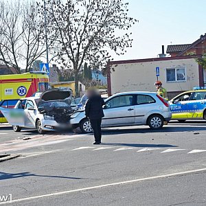 Auta zderzyły się czołowo na środku skrzyżowania. Skoda, jadąc ul. Wita Stwosza, miała pierwszeństwo przejazdu.