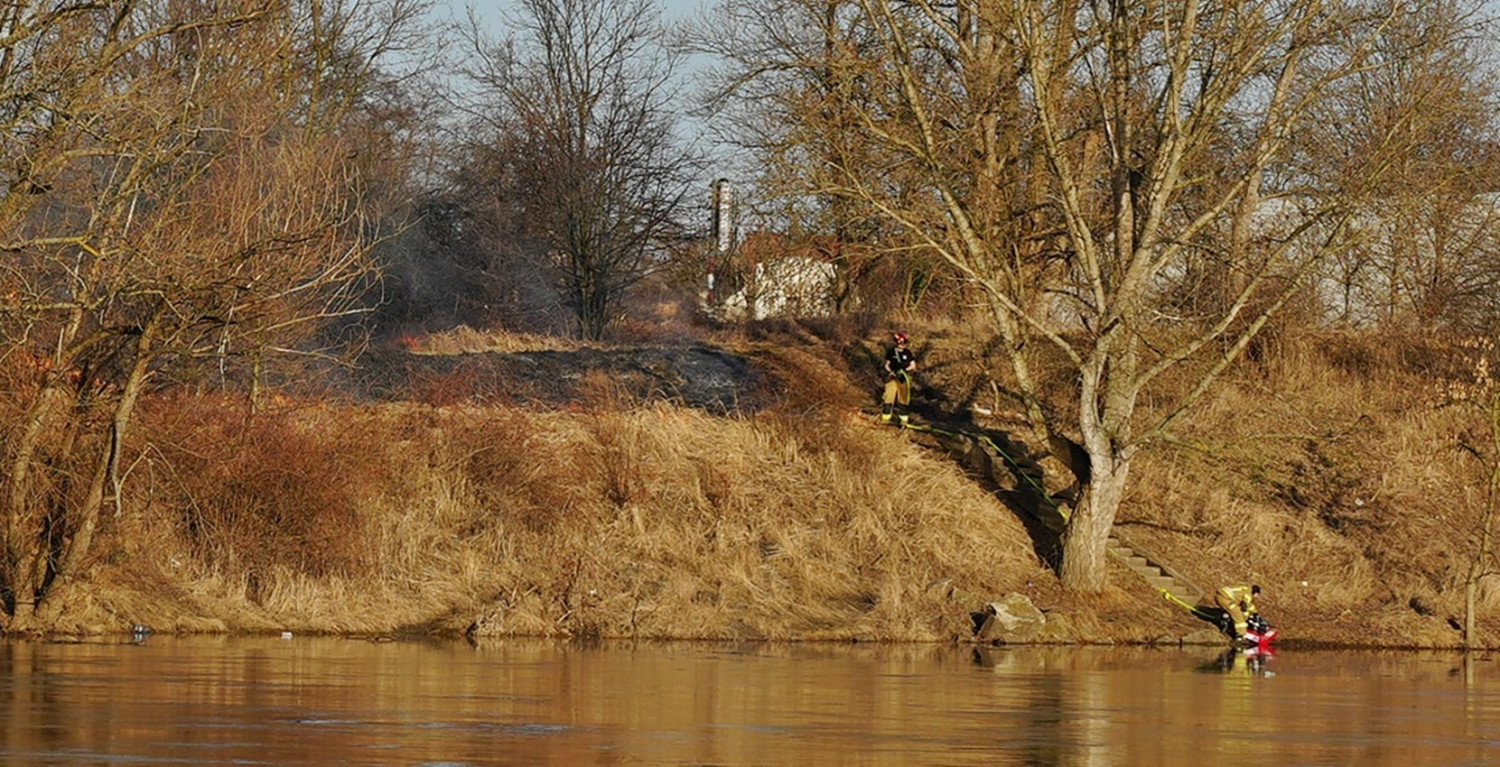 W piątek po godz. 15.00 strażacy otrzymali zgłoszenia o dwóch pożarach. Jeden z nich wybuchł tuż nad Odrą, w sąsiedztwie mostu kolejowego. Ogień objął trawy i zarośla.