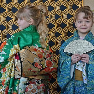 Dużym zainteresowaniem cieszyły się kimona pochodzące z prywatnej kolekcji prowadzącej warsztaty Katarzyny Kulig-Winkowskiej - pasjonatki Japonii i nauczycielki współpracującej ze szkołą. Najmłodsi z wypiekami na twarzach przymierzali tradycyjne stroje, a potem ochoczo pozowali do zdjęć na specjalnie przygotowanej ściance.
