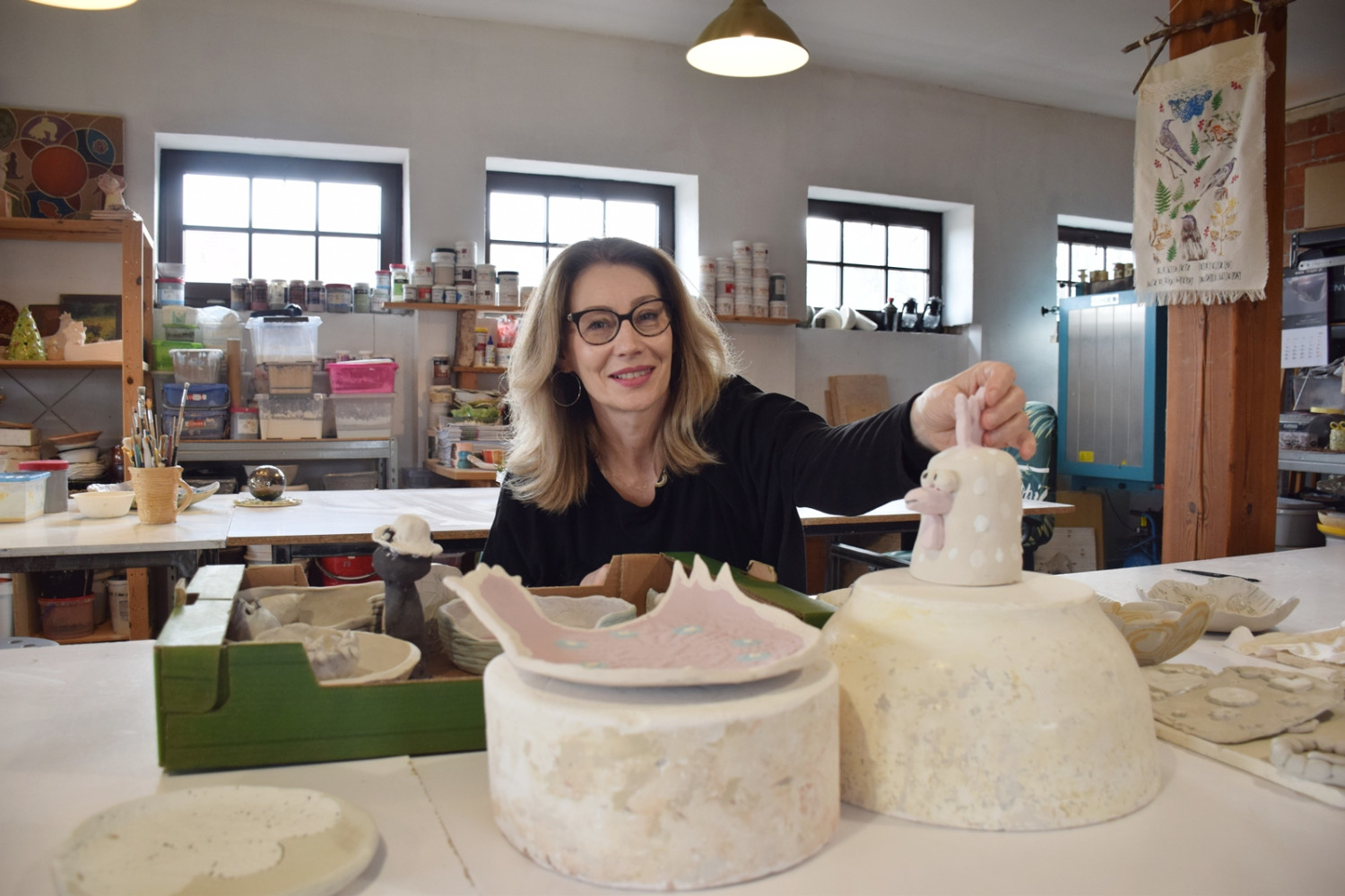 Skupiłam się ostatnio nie tylko na własnej twórczości, ale też na organizowaniu warsztatów ceramiki. Przyjeżdżają do mnie ludzie z całej okolicy, w różnym wieku, także dzieci ze szkół na zajęcia. Ceramika jest bardzo dobrym materiałem na terapię, a ja jestem także terapeutą z wykształcenia – skończyłam studia podyplomowe z arteterapii. Mam także przygotowanie pedagogiczne, więc zajęłam się tu leczeniem przez sztukę