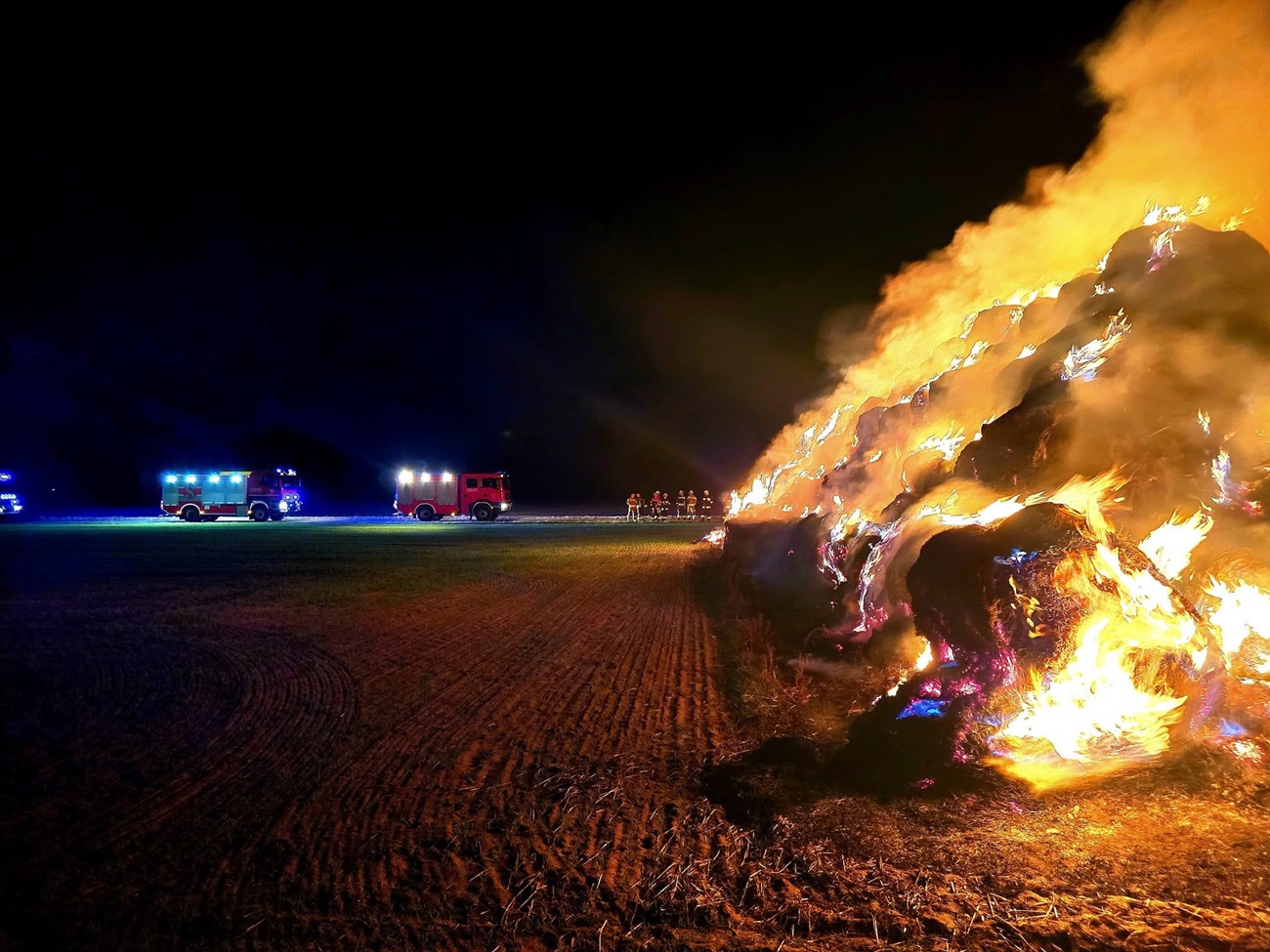 - Po dojeździe pierwszych zastępów na miejsce kierujący działaniem ratowniczym potwierdził, że ogniem objęty jest cały stóg liczący około 300 balotów słomy – informuje mł. kpt. Adrian Ziemiański, oficer prasowy Komendanta Powiatowego PSP w Polkowicach.