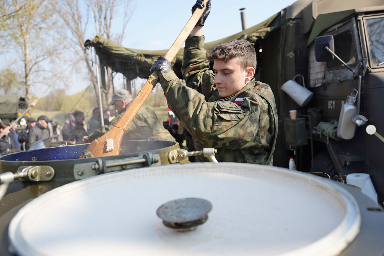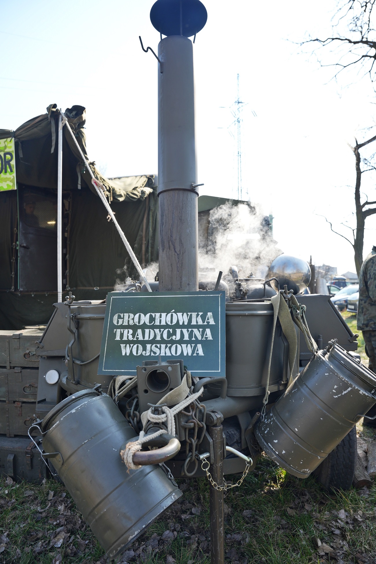 - W kotle oczywiście mieszam wojskową grochówkę - mówi pan Szymon, który szykuje zupę dla pierwszych gości imprezy. Tuż obok do grochówki można zamówić świeży bochen chleba, więc smacznie będzie na pewno.