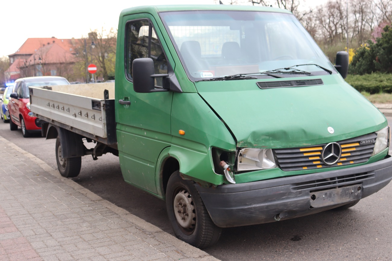 Na szczęście nikt nie odniósł obrażeń. Straty są jednak widoczne - Fiat ma wgnieciony i porysowany bok, a w dostawczym Mercedesie uszkodzony został przód, w tym zmiażdżony reflektor.