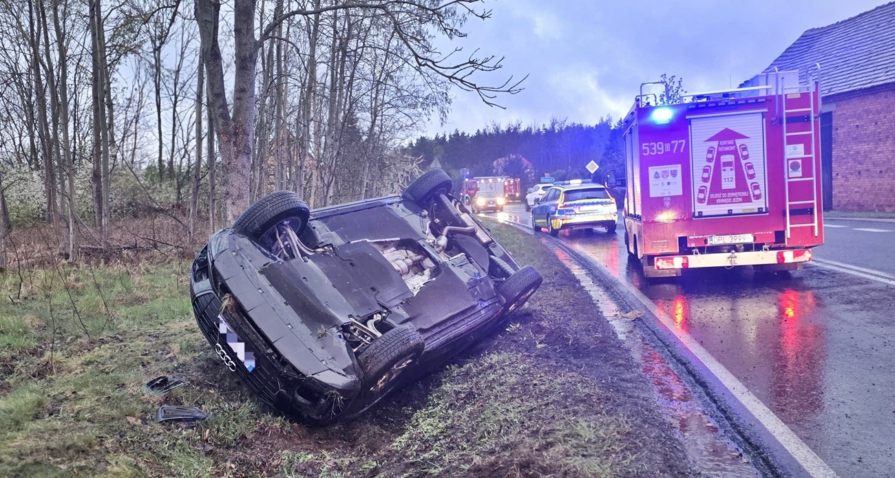 Do zdarzenia doszło wieczorem, po godz. 19:00. Kierowca wypadł z drogi krajowej DK12 i dachował.