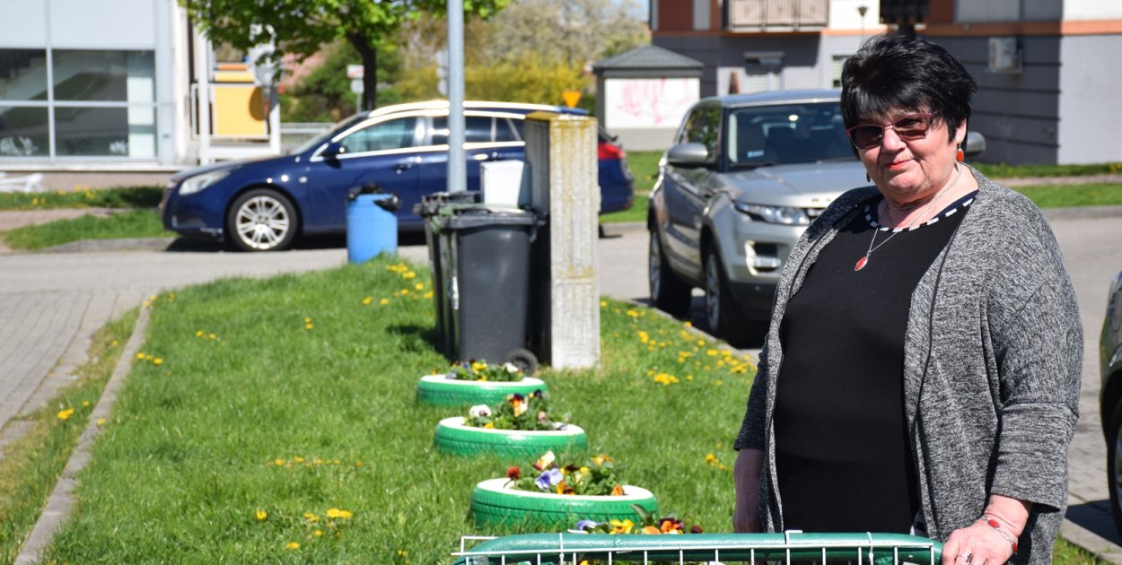 – mówi z uśmiechem pani Leokadia, nawiązując do głośnej niedawno w Głogowie akcji Nadleśnictwa Głogów nawołującej do oddawania starych opon w zamian za sadzonki. Ona... posadziła sadzonki w oponki. Jak opowiada, pomagał jej syn.