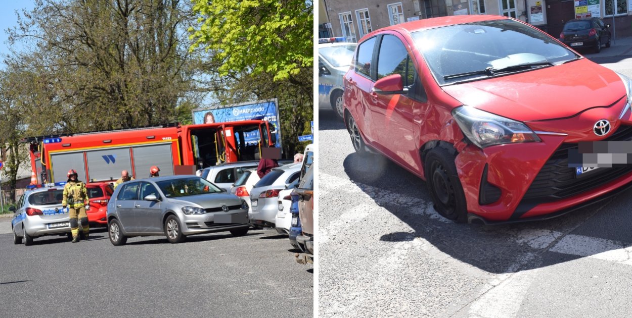 Na miejsce kolizji przyjechały aż dwie straże pożarne i dwa radiowozy policyjne, w tym jeden policji drogowej.