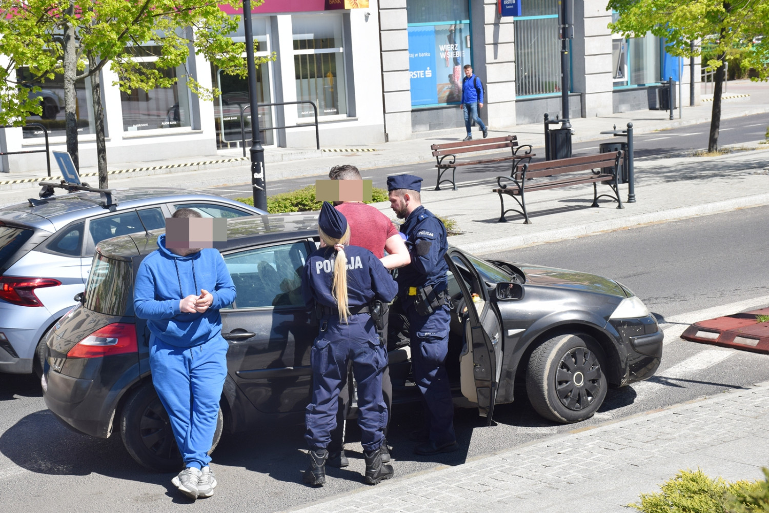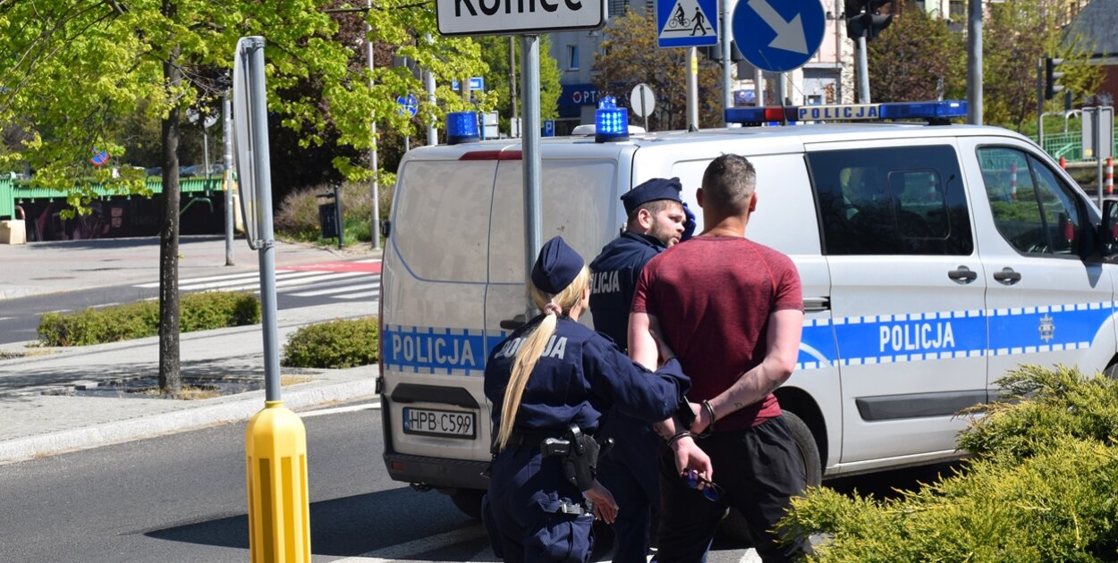 Następnie z radiowozu wysiadło dwóch policjantów, skontrolowało osobowy samochód. Na oczach przechodniów zakuli kierowcę w kajdanki i zaprowadzili do radiowozu.