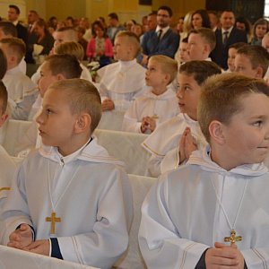 W niedzielę 5 maja, punktualnie o godz. 11 w kościele Bożego Ciała parafii pw. św. Mikołaja na starówce rozpoczęła się msza św., podczas której 66 dzieci klas trzecich, głównie Szkoły Podstawowej nr 7 w Głogowie przyjęło I Komunię św. W tym wyjątkowym dniu towarzyszyli im rodzice, chrzestni, babcie i dziadkowie, a także dalsza rodzina i przyjaciele. Teraz dzieci będą brały udział w tzw. białym tygodniu podczas nabożeństwa majowego. DAB