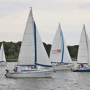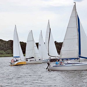 W Lubuskim Klubie Żeglarskim odbyły się przedostatnie regaty żeglarskie "O Błękitną Wstęgę Jeziora Sławskiego" w którym udział wzięło 25 jachtów w 7 klasach. Do tradycji tych regat jest start żeglarzy w porcie po czym ósemką opłynięcie dużej i małej wyspy Jeziora Sławskiego i powrót do portu.