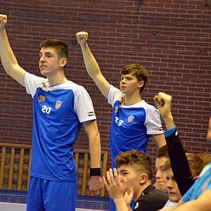 Juniorzy młodsi KS SPR Chrobrego Głogów nie bez problemów pokonali EUCO UKS Dziewiątkę Legnica. Był to wyrównany mecz, ale od początku z lekkim wskazaniem na gospodarzy. Chrobry w 3. minucie po rzucie karnym wykonanym przez Bartosza Szczeblewskiego prowadził 3:1. Później jednak była to walka punkt za punkt, wynik niemal remisowy aż do końca pierwszej połowy. Dopiero w końcówce udało się odskoczyć na dwie bramki przewagi 15:13 i zachować spokój w przerwie.