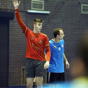 Co to był za mecz! Juniorzy KS SPR Chrobrego Głogów, po zaciętym starciu, pokonali EUCO-UKS Dziewiątkę Legnica 36:32. - Od początku wiedzieliśmy, że łatwo nie będzie - mówił Wojciech Łuczyk, trener głogowian, którzy od początku narzucili swój styl gry. Rywal jednak był wymagający. Nasi nie byli w stanie zbudować sobie większej przewagi, choć pod koniec pierwszej połowy dorzucili kilka bramek prowadząc 17:14. Po zmianie stron niewiele na parkiecie się zmieniło - była to twarda walka, co widać na zdjęciach. Często na pograniczu faulu. Polała się krew. Sędziowie dyscyplinowali obie drużyny. Nie obyło się bez kar. Ale komplet punktów ostatecznie został w Głogowie.