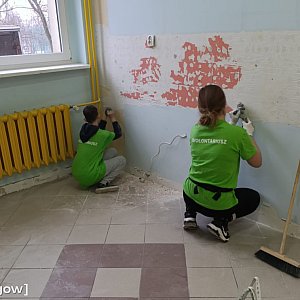 Rodzice i kibice remontują kochnię uczniom