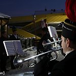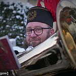 Górnicza pobudka z orkiestrą na Barbórkę 2023 pod Skarbkiem w Lubinie.
