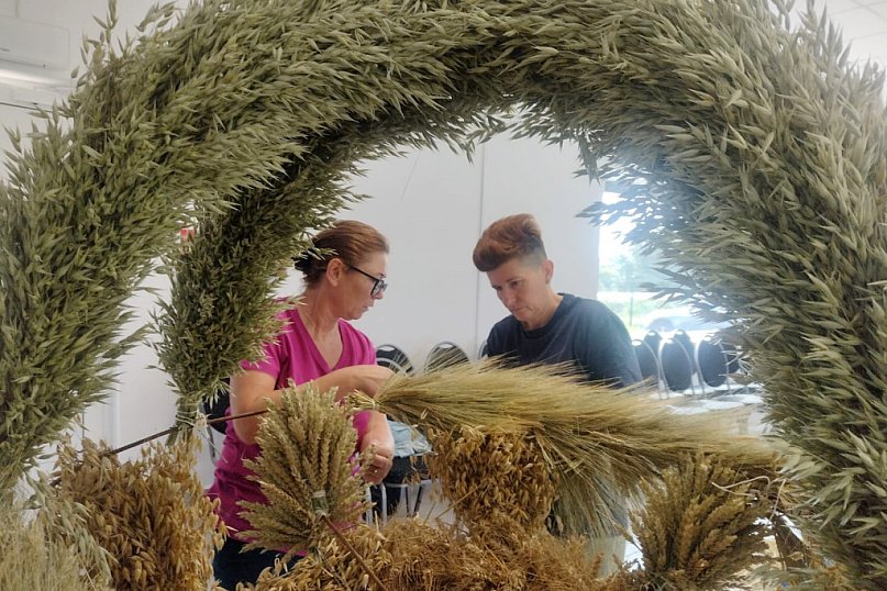 Pierwszy wieniec dożynkowy nowej sołtyski Turowa w gminie Głogów prawie gotowy (8.08.).