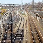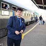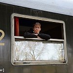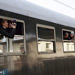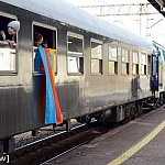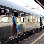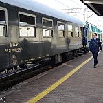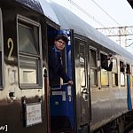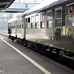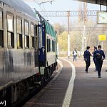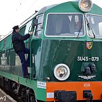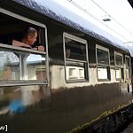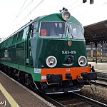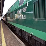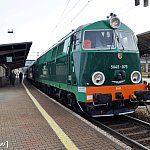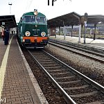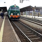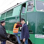 Specjalny pociąg z lokomotywą spalinową z lat 70-tych przejazdem w Głogowie (14.11.).
