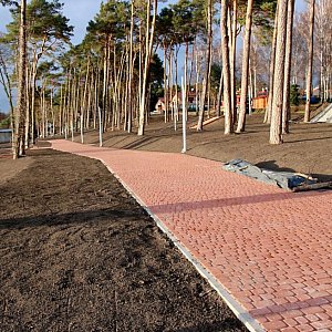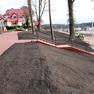 Również pozostałe prace związane z budową promenady, chodników, schodów do plaży i wody czy oświetleniem zostały zakończone i to kilka miesięcy przed terminem. W niedzielę w trakcie spacerów wielu mieszkańców podziwiało wręcz z zachwytem cały teren, chociaż niektórzy byli zbulwersowani, że na plażę nie wjedzie się wózkiem dziecięcym. Jak poinformowali nas wykonawcy, nie ma możliwości wykonać wjazdu obok schodów, gdyż są za bardzo strome. Dlatego cały wjazd na plażę będzie wykonany przy Pensjonacie Słoneczko w miejscu obecnego wjazdu ciężkiego sprzętu. Tak więc wózkiem będzie można objechać całą promenadę i dojechać aż do starej plaży.