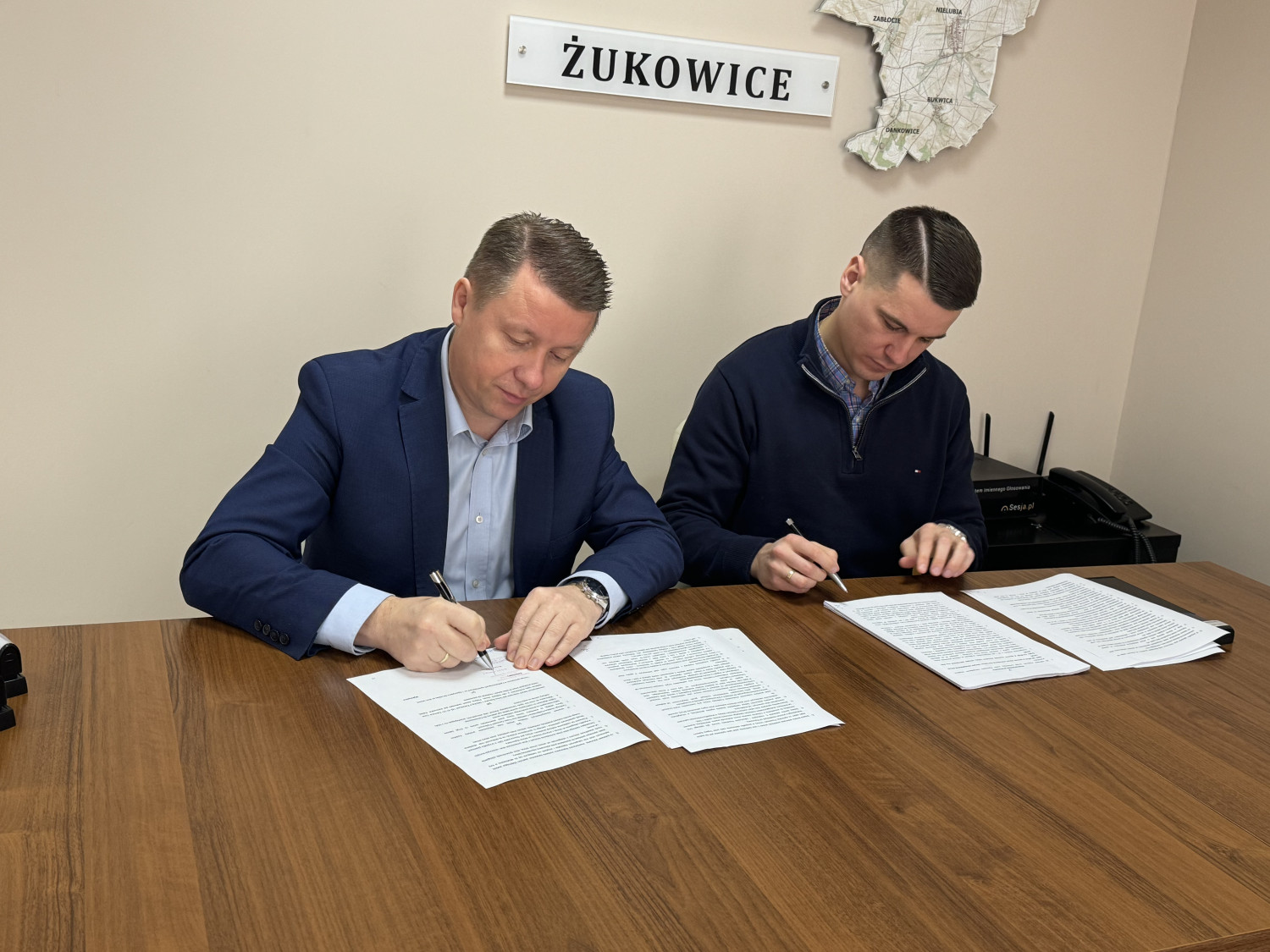Wójt Gminy Żukowice Krzysztof Wołoszyn podpisał umowę z wykonawcą (10.01.), który zajmie się kompleksową przebudową dróg w miejscowości Wiekowice.