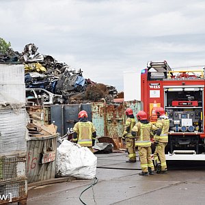 - powiedział nam dowódca zmiany, asp. sztab. Piotr Kwiatkowski. Strażacy działają m.in. przy pomocy dźwigu, który jest na miejscu, i przeładowuje całą hałdę odpadów metalowych. Hałda jest rozbierana, a następnie zlewana wodą. Na pewno to potrwa.