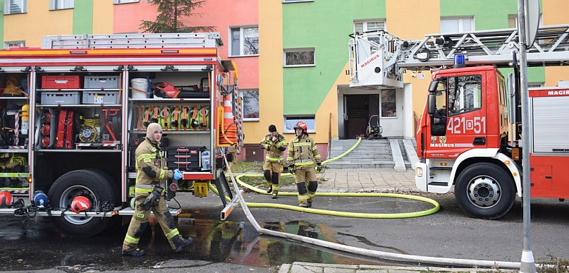 Pięć zastępów straży pożarnej PSP w tym samochód z drabiną z Polkowic w centrum os. Kopernik we wtorek (25.11.) po godz 13 robiły wrażenie. W bloku czteropiętrowym przy ul. Gwiaździstej był pożar. Zapaliło się w piwnicy.