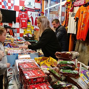 Co tam się działo! W siedzibie Klubu Kibice Niepełnosprawnego Chrobrego Głogów było wielkie pakowanie prezentów. Kibice wraz ze swoimi partnerami przygotowali upominki dla ponad 20 dzieci z ubogich rodzin. Do akcji przyłączyli się też piłkarze Chrobrego. Odwiedzili ich Michał Ilków-Gołąb oraz Dominik Dziąbek. Można było poczuć tam świąteczną atmosferę.