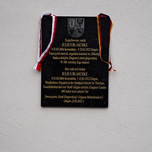 Na cmentarzu przy ul. Legnickiej odsłonięto (23.01.) pamiątkową tablicę z okazji 100. rocznicy śmierci Juliusa Blaschke. Jak mówi nam regionalista i miejski radny Dariusz Czaja, był to wybitny badacz dziejów Głogowa i Ziemi Głogowskiej oraz autora monografii miasta. Był też nauczycielem i organistą kościoła św. Mikołaja.