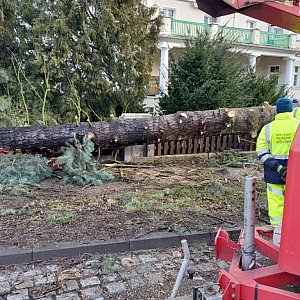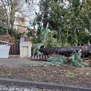 Na Wałach Chrobrego ogromne drzewo przewróciło się na posesję i chodnik. Uszkodziło drewniany płot. Ale najważniejsze, że nikomu nic się nie stało. Trwa usuwanie tego drzewa. Ruch na tej drodze jest utrudniony.