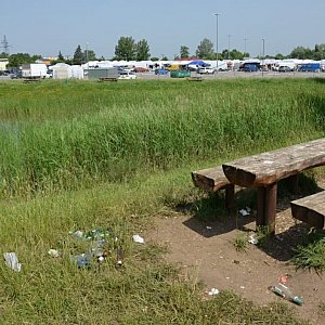 Za placem targowym na osiedlu Piastów jest teren rekreacyjny. Można raczej stwierdzić, że był, bo jak alarmują nasi czytelnicy, przez ostatnie miesiące bardziej wygląda niczym śmietnisko. Kosze wylądowały w stawku, stoły i ławki zostały nadpalone. Obok dużo butelek i puszek po alkoholu.
