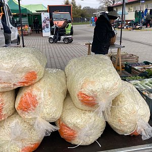 Mimo mroźnego dnia niektóre stoika aż kipią od kolorów - gruszki, ziemniaki (2,5 zł/kg), jabłka (5 zł), kapusty. - Kapusta, kalafior - od 2,5 do 4 zł/szt. - jest trochę drożej. Tak na sztuce to wychodzi w stosunku do zeszłego roku złotówka - tłumacz inny sprzedawca, ale zauważa, że późną jesienią zawsze było drożej. - Jak ktoś miejscowy, to mu łatwiej, taniej. Ale jak ktoś ma przyjechać z daleka i handlować to już gorzej - dorzuca kolejny handlujących dzisiaj na targowisku na Piastowie. - Lubię targ, bo taniej, uczciwi sprzedawcy. Nigdy nie oszukają. Polecam. Nawet w tak mroźny dzień - zaprasza pani Marzena.