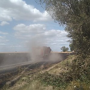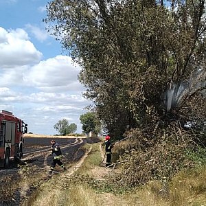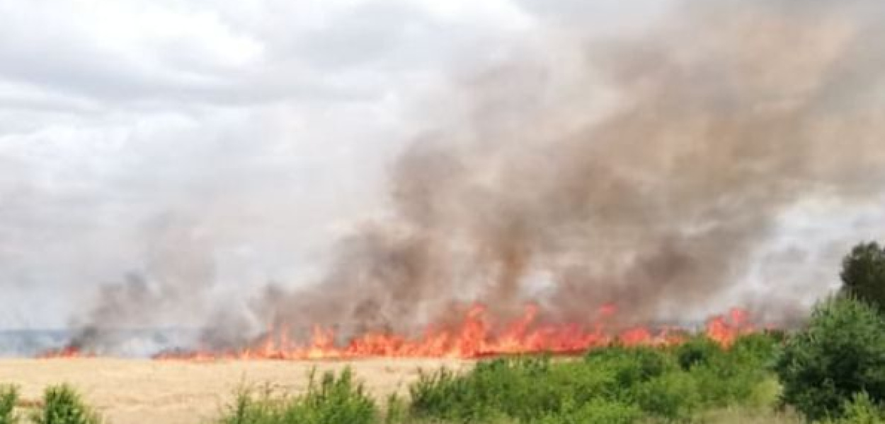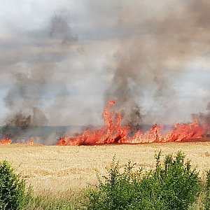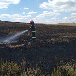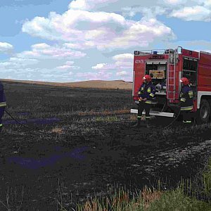 Przyczyną mogła być iskra z kombajnu. Z informacji od strażaków wynika, że w pożarze spłonął kombajn i spora połać zboża.
