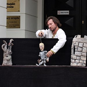 Na rynku przed ratuszem w ramach akcji "Głogowskie Lato Teatralne" odbyło się przedstawienie pod tytułem "Rycerz bez konia".
