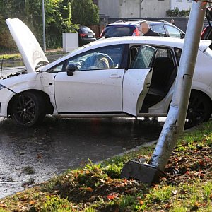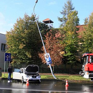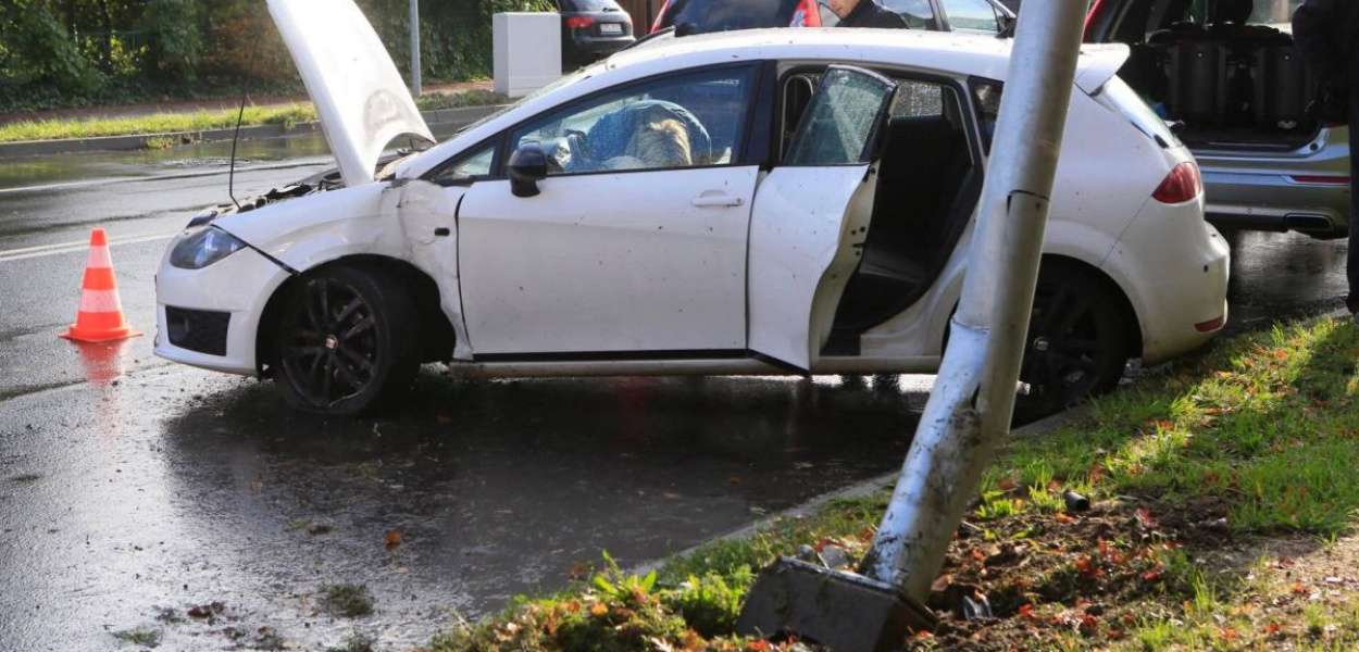 Kierująca seatem (35 l.) jechała ulicą Wojska Polskiego w kierunku os. Kopernik i na łuku drogi, na wysokości jednostki wojskowej, wypadła z drogi i uderzyła w latarnię.