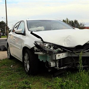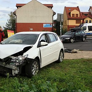 Siła uderzenia była duża - toyota zatrzymała się kilka metrów dalej na trawniku. Jedna osoba trafiła do głogowskiego szpitala - kierowca toyoty - a ruch w tym miejscu jest utrudniony.