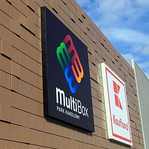 Zakończył się montaż loga nowego centrum handlowego. Jest wielkie i widoczne ze skrzyżowania ulic Wojska Polskiego z Sikorskiego. Teren wokół galerii też jest gotowy - chodniki i zieleń. A w środku w sklepach pojawiają się regały i witryny. Otwarcie Multiboxu pod koniec października.